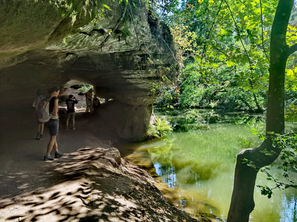 Ein wichtiger Punkt beim Schwierigkeitsgrad ist das Wetter. Da der Sandstein Feuchtigkeit speichern, kann es nach einem Regenguss oder im Herbst recht rutschig werden. In solchen Momenten fühlt sich der Weg eine Stufe schwieriger an, als er eigentlich ist. Mein Rat: Lass die glatten Sneaker im Schrank und zieh Schuhe mit einer ordentlichen Sohle an. Mit ein bisschen Grip unter den Füßen läufst du deutlich entspannter über die feuchten Wurzeln und Steine.